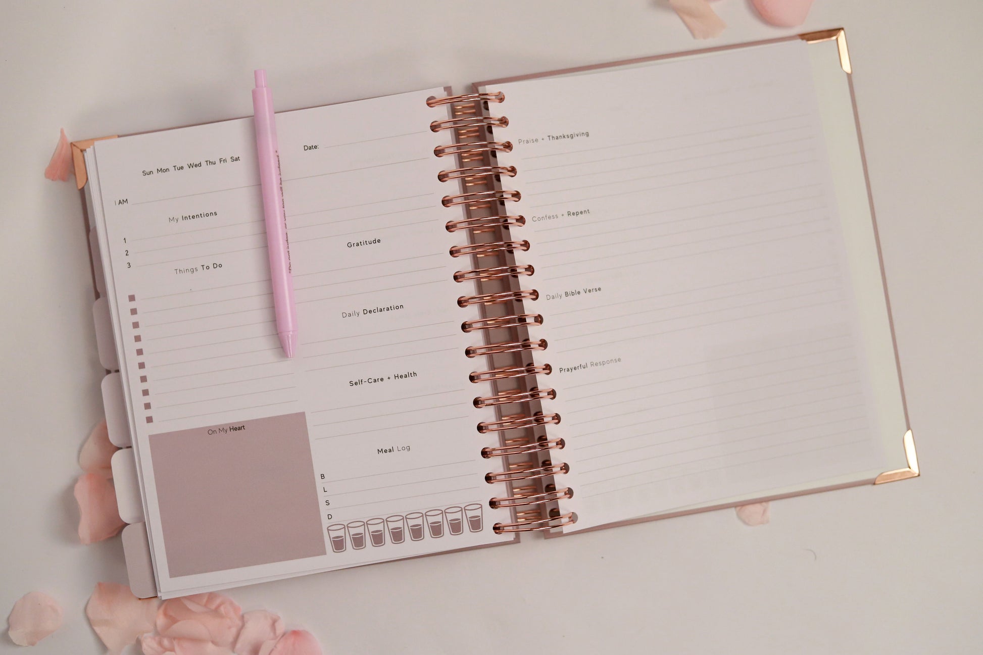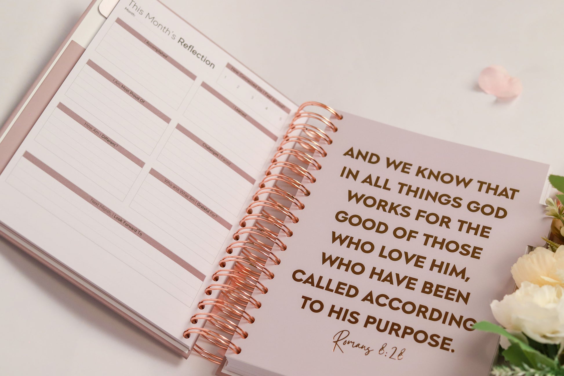 - INSPIRATIONAL SCRIPTURE: Contains uplifting biblical verses like Proverbs 19:31 printed in elegant rose gold lettering on divider pages for daily motivation